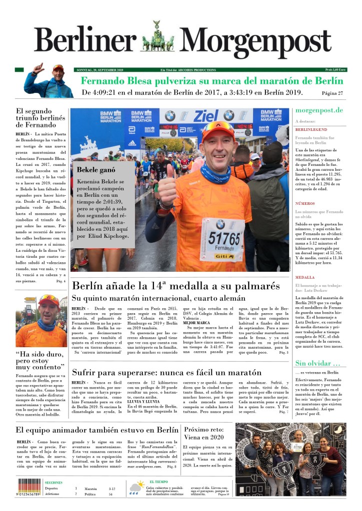 Lo único que nos faltó es que el corremarido fuera el maratoniano número un millón de la historia del maratón de Berlín, pero le cedimos el protagonismo a una canadiense. Aunque no digáis que no habría sido muuuuuy divertido…